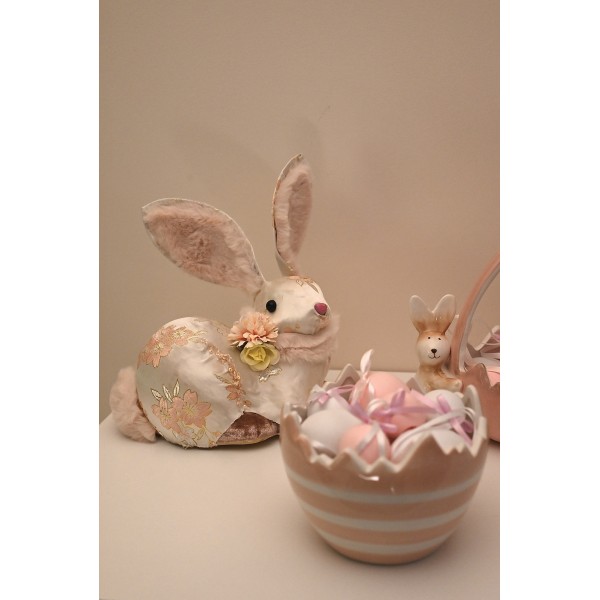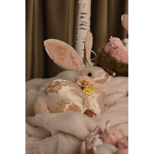 Iepuraș decorativ din material floral roz