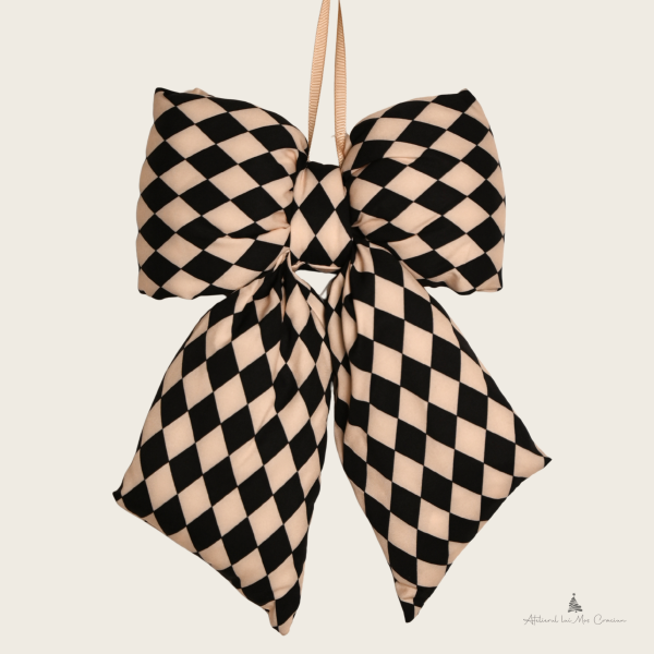 Decorațiune Fundă Fluffy Satin negru/crem 25 cm