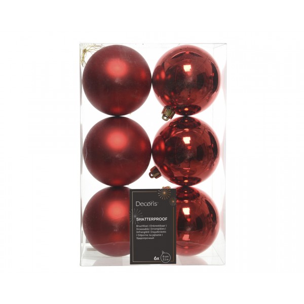 Set 6 Globuri roșii lucioase/mate shatterproof 8cm