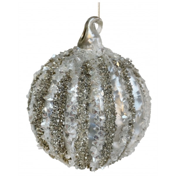 Set 4 Globuri Clara cu pietre și sclipici argintiu 8 cm