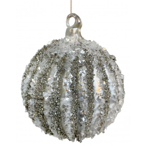 Set 2 Globuri Clara cu pietre și sclipici argintiu 10 cm