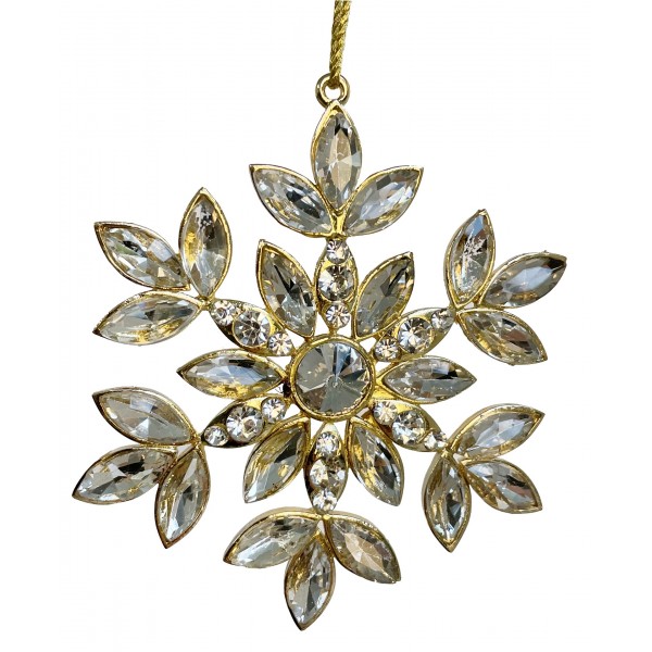 Ornament Fulg de zăpadă cu cristale și ramă aurie 9 cm