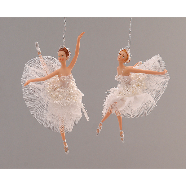 Adaugă un farmec delicat decorului tău de Crăciun cu acest set de 2 balerine albe “Sophia&Selina”. Cu o înălțime de 17 cm, aceste ornamente din polirășină impresionează prin designul lor grațios și detaliile fine. Perfecte pentru bradul de Crăciun sau alte decorațiuni festive, ele aduc un plus de eleganță și rafinament sărbătorilor tale.