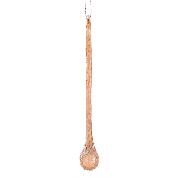 Adaugă un strop de eleganță bradului tău de Crăciun cu acest ornament sub formă de țurțure, realizat din sticlă fumurie și decorat cu detalii aurii strălucitoare. Cu o lungime de 14 cm, acest ornament sofisticat aduce un efect luminos și festiv, fiind ideal pentru a completa un decor de sărbători rafinat.