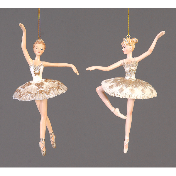 Adaugă un farmec elegant decorului tău de Crăciun cu acest set de 2 balerine Caroline&Clara, realizate din polirășină în nuanțe delicate de crem și auriu. Cu o înălțime de 18 cm, aceste ornamente impresionează prin detalii fine și design rafinat, fiind perfecte pentru decorarea bradului sau pentru a aduce un plus de grație aranjamentelor festive.